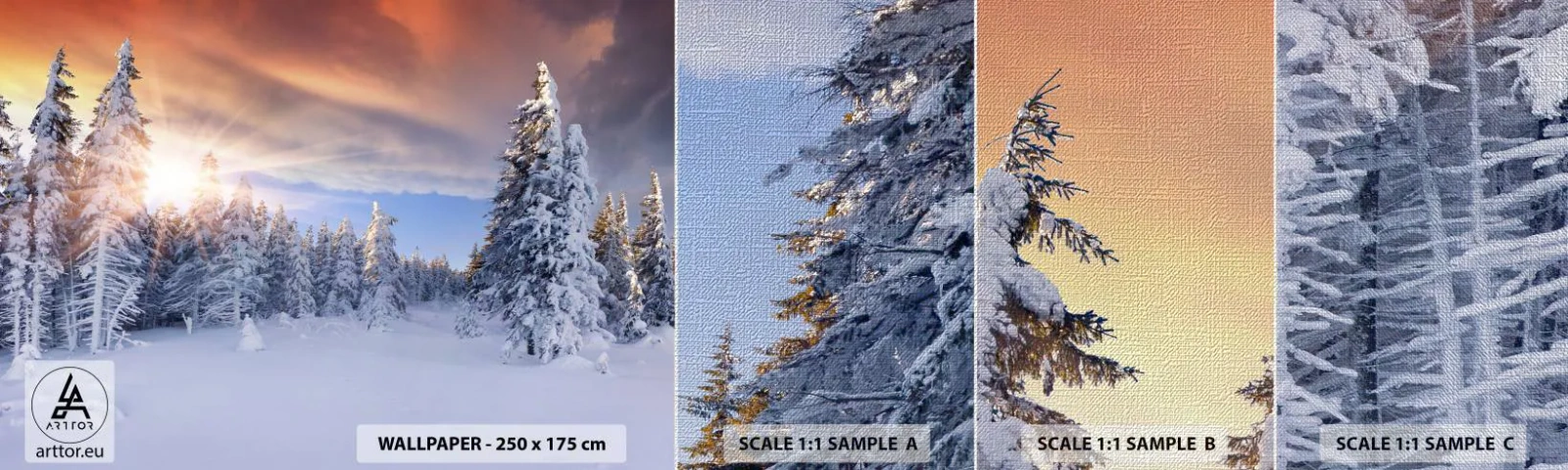 Zanim zdecydujesz się na pełnowymiarową fototapetę PREMIUM CANVAS, zachęcamy do zamówienia próbki materiału w wymiarze 100x30 cm. Dzięki próbce możesz na żywo sprawdzić jakość materiału, zobaczyć odwzorowanie kolorów, poczuć strukturę powierzchni oraz ocenić grubość materiału, co pomoże Ci podjąć świadomą decyzję o wyborze najlepszej fototapety do Twojego wnętrza.