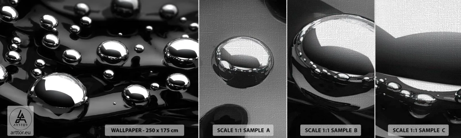 Fototapeta Próbka Premium Canvas - Z czarnej toni - Abstrakcja, Chromowane Kule, 3D - 100x30 cm