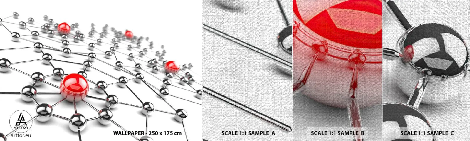 Fototapeta Próbka Premium Canvas - Srebrzysta sieć - Abstrakcja, Metalowe Kule, 3D - 100x30 cm