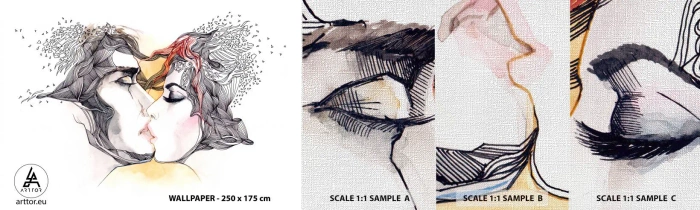 Fototapeta Próbka Premium Canvas - Świat nie istnieje - Abstrakcja, Para Zakochanych, Pocałunek - 100x30 cm
