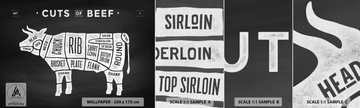 Fototapeta Próbka Premium Canvas - Elementarz masarza - Gastronomia, Byk, Wołowina - 100x30 cm
