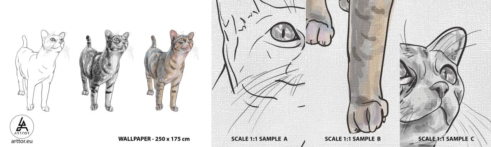 Fototapeta Próbka Premium Canvas - Lekcja rysunku - Zwierzęta, Kot, Dla Dzieci - 100x30 cm