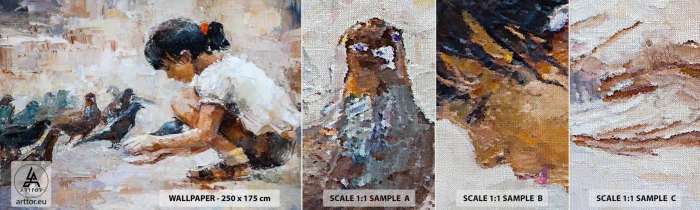 Fototapeta Próbka Premium Canvas - Maluczcy i najmilsi - Dziewczynka, Gołębie, Dla Dzieci - 100x30 cm