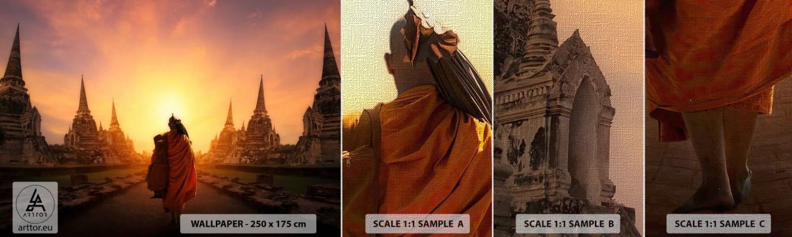 Zanim zdecydujesz się na pełnowymiarową fototapetę PREMIUM CANVAS, zachęcamy do zamówienia próbki materiału w wymiarze 100x30 cm. Dzięki próbce możesz na żywo sprawdzić jakość materiału, zobaczyć odwzorowanie kolorów, poczuć strukturę powierzchni oraz ocenić grubość materiału, co pomoże Ci podjąć świadomą decyzję o wyborze najlepszej fototapety do Twojego wnętrza.