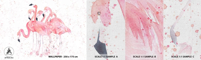 Fototapeta Próbka Premium Canvas - Różowy ansambl - Flamingi, Ptaki, Grafika - 100x30 cm