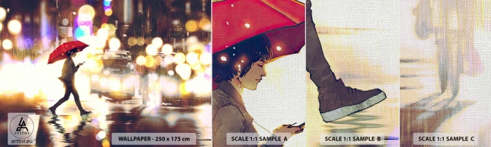 Fototapeta Próbka Premium Canvas - A jednak słoneczna - Miasto, Spacer W Deszczu, Parasol - 100x30 cm