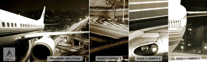 Fototapeta Próbka Samoprzylepna Deluxe Sticker - Wzlecieć w noc - Samolot, Miasto, Motoryzacja - 100x30 cm