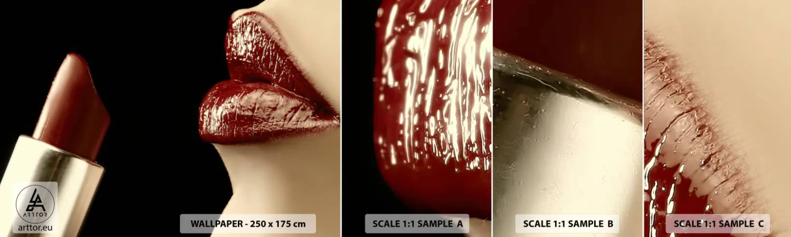 Fototapeta Próbka Samoprzylepna Deluxe Sticker - Zmysłowość i blask karminu - Ludzie, Kobieta, Makijaż - 100x30 cm