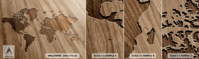 Fototapeta Próbka Samoprzylepna Deluxe Sticker - Świat podany na stole - Mapa Świata, Drewno, Kontynenty - 100x30 cm