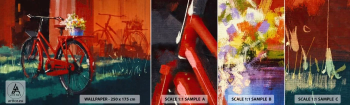 Fototapeta Próbka Samoprzylepna Deluxe Sticker - I want to ride my bicycle - Rower Vintage, Kwiaty W Doniczce, Podróż - 100x30 cm