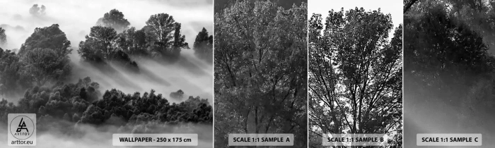 Fototapeta Próbka Samoprzylepna Deluxe Sticker - Wstający ze snu - Krajobraz, Las, Mgła - 100x30 cm
