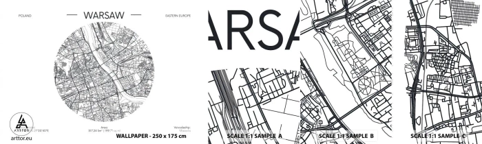 Fototapeta Próbka Samoprzylepna Deluxe Sticker - Anatomia Warszawy - Mapa, Warszawa, Polska - 100x30 cm