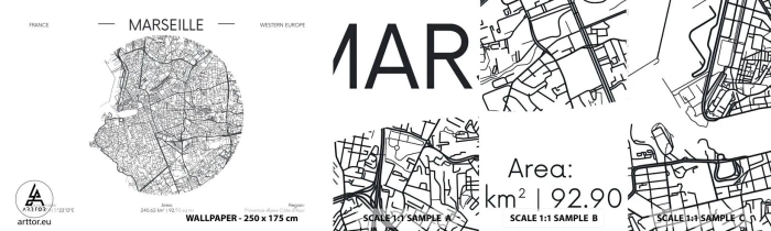 Fototapeta Próbka Samoprzylepna Deluxe Sticker - Anatomia Marsylii - Mapa, Marsylia, Francja - 100x30 cm