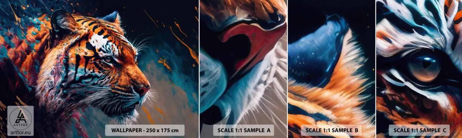 Fototapeta Próbka Samoprzylepna Deluxe Sticker - Dzikie piękno - Tygrys, Kolorowy, Zwierzę - 100x30 cm