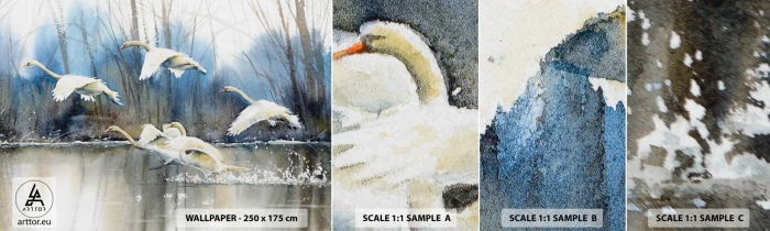 Fototapeta Próbka Samoprzylepna Deluxe Sticker - Jak w baśni o dzikich łabędziach - Łabędzie, Ptaki, Pejzaż - 100x30 cm