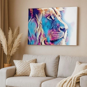 Obraz na płótnie - Portret lwa w żywych, abstrakcyjnych kolorach - 70x50cm - Mądrość natury - Nowoczesna dekoracja ścienna do salonu i sypialni ARTTOR