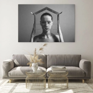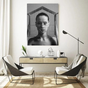Ten artystyczny obraz emanuje emocjami i przesłaniem, które można interpretować na różne sposoby. Symbolika klatki w połączeniu z ludzką postacią podkreśla tematy związane z ograniczeniami, wolnością i introspekcją. Czarno-biała tonacja dodaje dramatyzmu i elegancji, czyniąc obraz idealnym elementem dekoracyjnym w nowoczesnych i minimalistycznych wnętrzach.