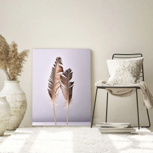 - Dwie subtelne pióra ustawione na jasnym tle, symbolizujące delikatność i spokój. Idealny obraz do wnętrz o minimalistycznym stylu.