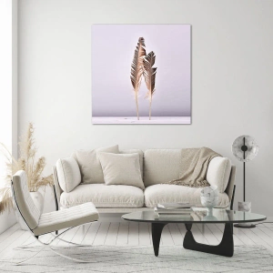 "Przeciw nicości" to wyjątkowy obraz, który przedstawia dwie subtelne pióra ustawione na jasnym tle. Ten motyw zachwyca swoją prostotą i delikatnością, wprowadzając do wnętrza harmonię i spokój.