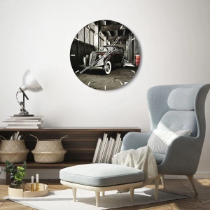 Zegar ścienny - Nieprzemijająca elegancja lat 30. - Klimatyczny garaż z klasycznym samochodem vintage