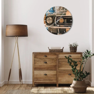Zegar ścienny - Kultowy samochód retro w klasycznym otoczeniu - 30x30cm - Spotkanie z legendą - Nowoczesna dekoracja ścienna do salonu i sypialni ARTTOR