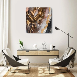 Zegar ścienny - Abstrakcyjna kompozycja z teksturą złota i minerałów - 30x30cm - Żywioł ziemi - Nowoczesna dekoracja ścienna do salonu, kuchni i sypialni ARTTOR