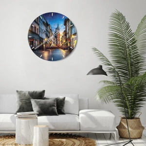 Zegar ścienny - Wieczorna ulica z widokiem na krakowską katedrę - 30x30cm - Krakowski czar - Nowoczesna dekoracja ścienna do salonu i sypialni ARTTOR