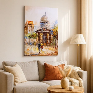 Obraz na płótnie - Impresjonistyczna scena miejskiej architektury z kopułą - 50x70cm - Paryski spacer - Nowoczesna dekoracja ścienna do salonu, kuchni i sypialni ARTTOR