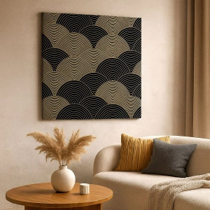 Obraz na płótnie - Abstrakcyjny wzór z półkolistych linii w odcieniach złota i czerni - 50x70cm - Jedność w wielości - Nowoczesna dekoracja ścienna do salonu, kuchni i sypialni ARTTOR