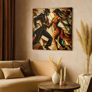 Obraz na płótnie - Dynamiczna scena tańca w stylu art déco z kontrastowymi barwami - 50x70cm - Taniec pasji i namiętności - Nowoczesna dekoracja ścienna do salonu, kuchni i sypialni ARTTOR