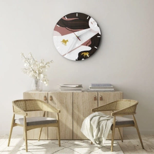Zegar ma średnicę 30x30 cm i wykonany jest na szkle, co zapewnia elegancki połysk, trwałość i łatwość czyszczenia. Zegar szklany to idealne połączenie estetyki i praktyczności. Jego okrągła forma harmonizuje z miękką stylistyką ilustracji, a subtelne oznaczenia godzin nie zakłócają artystycznego przekazu.