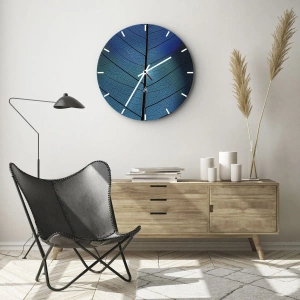 Zegar ścienny - Zbliżenie na niebieski liść z widocznym detalem żyłek - 30x30cm - Misterna budowa - Nowoczesna dekoracja ścienna do salonu i sypialni ARTTOR