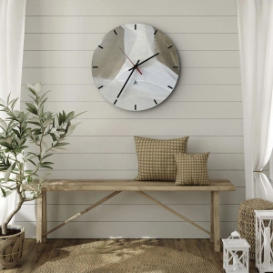Zegar ścienny - Delikatna abstrakcja w odcieniach beżu i bieli - 30x30cm - Fala bieli - Nowoczesna dekoracja ścienna do salonu i sypialni ARTTOR