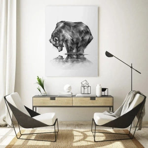 - Artystyczna grafika niedźwiedzia pochylającego się nad taflą wody. Minimalistyczny i monochromatyczny design idealny do eleganckich wnętrz.