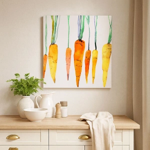 Obraz na płótnie - Akwarelowe marchewki w różnych odcieniach pomarańczu i żółci - 50x70cm - Uroda zwyczajności - Nowoczesna dekoracja ścienna do salonu, kuchni i sypialni ARTTOR