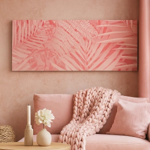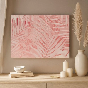 Obraz na płótnie - Różowe liście paproci i palm w stylu tropikalnym - 50x70cm - Różowy koncept - Nowoczesna dekoracja ścienna do salonu, kuchni i sypialni ARTTOR