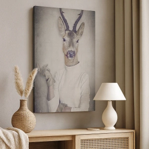 Obraz na płótnie "Niech przemówią gesty" to nietuzinkowa i humorystyczna kompozycja, która przyciąga uwagę swoją oryginalnością. Tryptyk przedstawia postacie zwierząt w ludzkich ubraniach – zebrę, jelenia i łosia – w stylizowanych kadrach na artystycznym tle. Ten wyjątkowy motyw łączy elementy surrealizmu z elegancją, tworząc dzieło, które jest zarówno zabawne, jak i stylowe. To doskonały wybór dla osób ceniących sztukę z przymrużeniem oka i niebanalne dekoracje wnętrz.