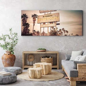 Obraz na ścianę - Retro motel w promieniach słońca - Retro szyld motelu otoczonego palmami