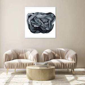 Obraz „To nie takie proste” to niezwykła interpretacja abstrakcyjnej formy, gdzie główną rolę grają dynamiczne, płynne pociągnięcia pędzla utrzymane w tonacji czerni, bieli i odcieni szarości. Kompozycja jest zamkniętą formą, przywodzącą na myśl węzeł lub skomplikowaną strukturę, która hipnotyzuje i przyciąga wzrok. Czarno-biała paleta kolorów podkreśla kontrasty oraz strukturę obrazu, wprowadzając do wnętrza głębię i charakter. Ten motyw doskonale współgra z nowoczesnymi, minimalistycznymi przestrzeniami, podkreślając ich styl i wyrazistość.