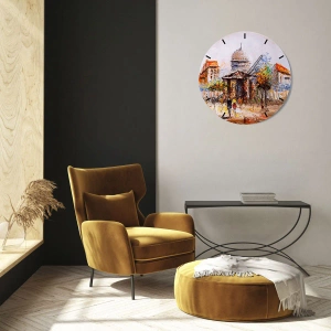 Zegar ścienny - Impresjonistyczna scena miasta z zabytkowym budynkiem - 30x30cm - Paryski spacer - Nowoczesna dekoracja ścienna do salonu i sypialni ARTTOR