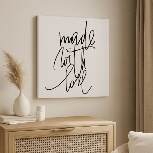 Obraz na płótnie - Minimalistyczny obraz z napisem 'Made with love' w stylu kaligrafii - 50x70cm - Najlepsza marka - Nowoczesna dekoracja ścienna do salonu, kuchni i sypialni ARTTOR