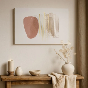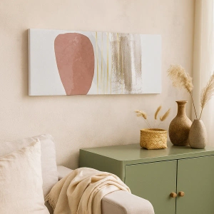 Obraz na płótnie - Abstrakcyjna kompozycja z geometrycznymi kształtami i złotymi liniami - 50x70cm - Abstrakcyjna kolumnada - Nowoczesna dekoracja ścienna do salonu, kuchni i sypialni ARTTOR