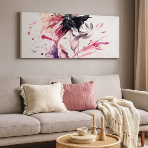 - Abstrakcyjny portret kobiety ukazany w dynamicznej kompozycji. Intensywne czerwienie i różowe akcenty dodają obrazowi energii i nowoczesnego stylu. Idealna dekoracja do wnętrz takich jak salon czy sypialnia.