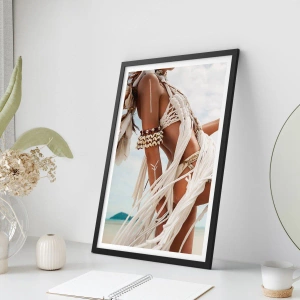 Plakat w czarnej ramie - Kobieta w stylizacji etnicznej na plaży - 50x70cm - Kapłanka słońca - Nowoczesna dekoracja ścienna do salonu i sypialni ARTTOR