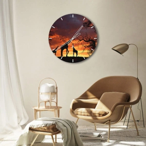 Zegar ścienny - Mała kolacja w gronie najbliższych - Sylwetki żyraf na tle afrykańskiego zachodu słońca