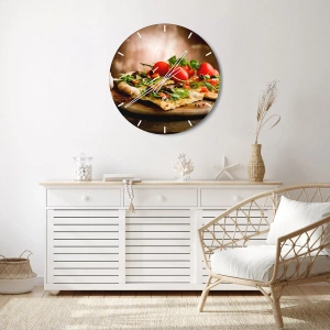Zegar ścienny - Pizza z warzywami na drewnianej desce w rustykalnym stylu - 30x30cm - Prosto z pieca i z ogrodu - Nowoczesna dekoracja ścienna do salonu i sypialni ARTTOR