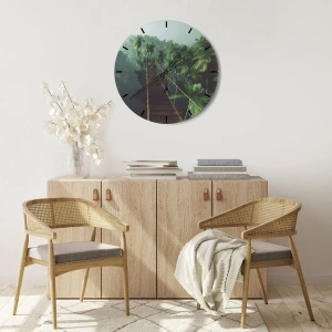 Zegar ścienny - Wiszący most w tropikalnym lesie otoczonym mgłą - 30x30cm - Nad kipielą zieleni - Nowoczesna dekoracja ścienna do salonu i sypialni ARTTOR