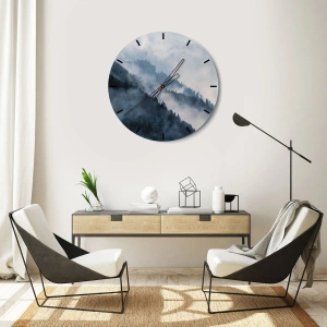 Zegar ścienny - Mgła unosząca się nad zalesionymi zboczami gór w tajemniczym krajobrazie - 30x30cm - Mistyka gór - Nowoczesna dekoracja ścienna do salonu i sypialni ARTTOR
