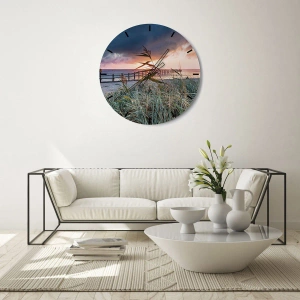 Zegar ścienny – Nie przemija z wiatrem – Widok na molo o zachodzie słońca z trawami na pierwszym planie