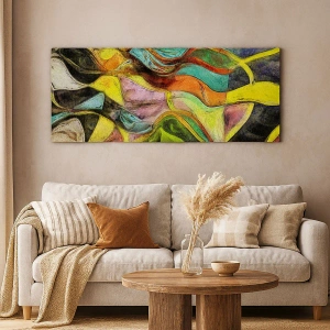 Obraz na płótnie "Ruch to życie" to wyjątkowe dzieło sztuki, które przyciąga uwagę swoją abstrakcyjną formą i intensywną kolorystyką. Kompozycja składa się z różnorodnych barwnych plam i dynamicznych linii, które tworzą harmonijną, a zarazem pełną ekspresji całość. Odcienie zieleni, błękitu, żółci, różu i pomarańczu przenikają się wzajemnie, wprowadzając do wnętrza energię i nowoczesny charakter. Ten obraz to doskonały wybór dla osób ceniących sztukę współczesną i odważne dekoracje.